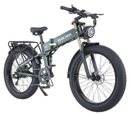 BURCHDA R5 Pro Folding Electric Bike 26*4.0 Inch Fat Tire 1000W Motor 50Km/h Max Speed 48V 15Ah Battery for 60km Range Double Shock Absorbers - Dark Green