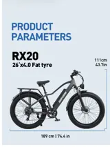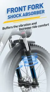Equipped with a multi-functional LCD display, Hydraulic brake, hydraulic suspension fork, adjustable seat, high brightness front light, anti-skidding 4.0 fat tire, increase stability, comfort and energic riding experience.