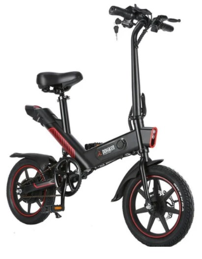 DOHIKER Y1 Folding Electric Bicycle 36V 350W 14 inch 10Ah Battery 25km/h City Bike LED Headlight IP54 Waterproof - Black