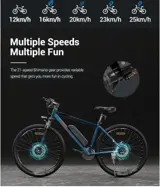 The electric bicycle with front and rear disc brakes and Shimano 21 speeds, you can choose any speed to enjoy faster riding time or experience relaxing holiday according to your needs. Perfect brakes fully protect your safety.