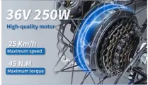 250W POWERFUL MOTOR: Boasting a powerful 250-watt motor, the bike allows you to reach speeds of up to 25km/h with ease, it will increase stronger hill-climbing power and greater terrain adaptability.