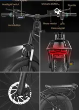 IDOTATA G20 Pro Electric Bike 20*4.0 inch Tire 48V 1000W Motor 12.8Ah Battery Shimano 7 Speed Gear Mechanical Disc Brake