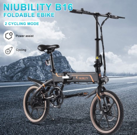 NIUBILITY B16 Electric Moped Folding Bike 16 inch 42V 10.4Ah Battery 40km -50km Mileage 350W Motor Max 25km/h Double Disc Brake Variable Speed System LED Light - Black