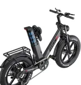 The bike features 20*4.0 inch tires, offering excellent traction and stability on various terrains, making it suitable for off-road adventures and urban commuting.