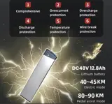 2. 48V 12.8Ah battery, more durable, providing 80-90km mileage in power assist mode.
