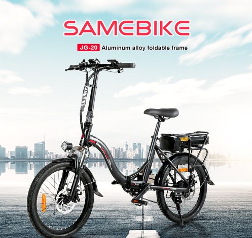 Samebike JG20 Smart Folding Electric Moped Bike 350W Motor 10Ah Battery Max 30km/h 20 Inch Tire - Black