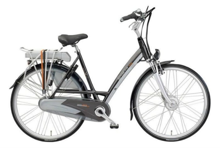 De fiets is voorzien van een uitneembare accu, die verwerkt is in de bagagedrager.