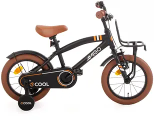 Daar is hij weer de oude vertrouwde 2Cool kinderfiets van AMIGO, maar nu in de 2.0 versie! Nog steeds met zijn vastberaden vintage cruiser karakter maar MET een nog strakker kleurenschema en verbeterde specificaties. Het stoere zwarte 'Tough Black' frame is gecombineerd met tijdloze bruine details en 'full black' hardware. De 14 inch jongensfiets heeft een voordrager speciaal voor jouw school- of gymspullen, hoe handig. Een transportfiets cooler dan deze ga je niet vinden! Psstt.. nog niet heel veel fietservaring? De afneembare zijwieltjes geven de juiste balans