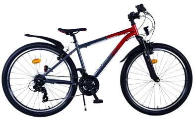 Stimuleer je behendigheid op de fiets en manoeuvreer over de meest uitdagende paden met de XC Race van Volare. Een ideale fiets voor op het schoolplein of de speeltuin. Dankzij de vering in de voorvork blijf je in balans en met de fietsstandaard staat de fiets overal stabiel. Deze mooie satijn grijze 26 inch racefiets met rode accenten brengt je overal!
