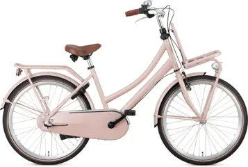 De Daily Dutch Basic+ is de basis van je drukke (school)week. De traditioneel gevormde transportfiets is voorzien van dubbele bagagedrager. Zowel voor- als achterop kan eenvoudig bagage voor school of sportactiviteiten worden meegenomen. Aardig wat mogelijkheden dus! Deze zalmroze 24 inch fiets van Popal (met een framemaat van 40 centimeter) heeft stijlvolle bruine contrasterende details