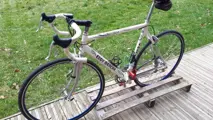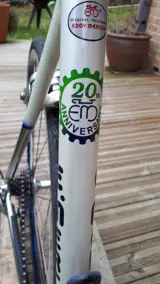 Ivoorkleurige racefiets gemaakt voor de 20ste verjaardag van de Eddy Merckx fabriek in 2000 (CIMA 2000). Het heeft 20 snelheden, afgemonteerd met Campagnolo Daytona-onderdelen, klikpedalen zijn Look. Hij weegt 8,6 kg (aluminium 702). Het frame is genummerd: 7197 en heeft een hoogte van 54 cm (maat M, voor een maat tussen 1.70M en 1.82M) Het heeft 3 bakjes. De fiets is in goede staat op een paar krassen na Ik help met de verzending maar de koper regelt de verzending zelf.