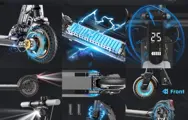 The electric scooter can display its speed, battery life, speed mode and mileage.