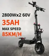 DUOTTS D88 60v 5600w high-speed DC brushless dual-motor foldable electric scooter features powerful dual motors. 2*2800w motors propel the e-scooter to a max speed of 85km/h