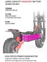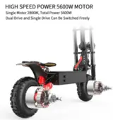 2 * 2800w motors propel the e-scooter to a max speed of 85km/h.