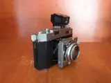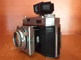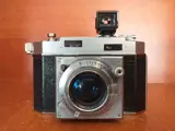 Agfa-Karat-36 meetzoekercamera, serienummer: VY 1119, met Rodenstock Karat-Heligon f:2/50 mm. (Rood "A"). De camera is normaal gebruikt, goede staat, met een paar zichtbare gebruikssporen. Functioneel, getest met film. De lenzen zijn schoon, zonder schimmel. Met zijn eigen originele lederen tas.