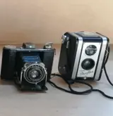 6 verzamelwaardige vouwcamera's met originele lederen koffers. 1, Coronet Folding Pocket Camera, gemaakt in Engeland, 2, Prontor II, gemaakt in Duitsland. 3, Agfa Billy-Clack, gemaakt in Duitsland. 4, Pocket Kodak nr. 1 serie II, gemaakt in de VS. 5, Kodak Junior 620 Anastigmat, gemaakt in de VS. 6. Kodak duaflex gemaakt in het VK. Het gewicht is ongeveer 4 kg. Wordt zorgvuldig verpakt en verzonden binnen de EU met dpd Germany en internationaal met DHL Deutsche Post.