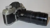 Bij de camera is een Angénieux Alitar 4.5/180mm telelens aanwezig. Deze lens is in goede staat, uiterlijk wat gebruikssporen, maar met mooi glas en een soepele bediening. Inclusief achterdop.