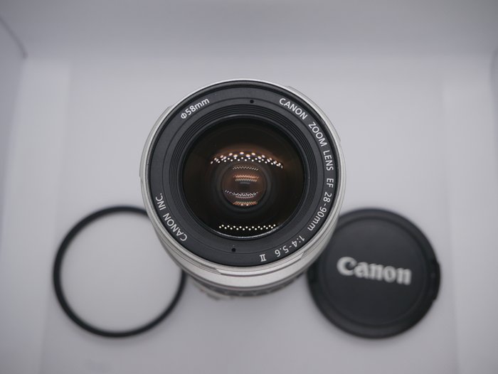 Deze Canon zoomlens EF 28-90mm 1:4-5.6 II is in prima werkende staat. De lenzen zijn krasvrij en te gebruiken op alle Canon camera's met EF vatting.