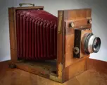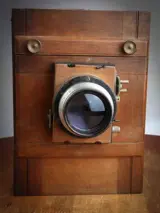 13x18 camera met Rechtlijnige St Etienne Lens, 3 frames, sluiter en tas