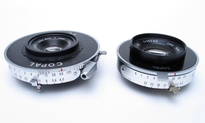 - Tominon 1:4,5 f=105mm lens met zelfspannende Copal nr. 0 sluiter. Gemaakt in Japan voor Polaroid. Zeer goede werkende staat. Mooi en schoon. Alle snelheden werken prima. Dekt 4x5 tot oneindig - ik heb het gebruikt met mijn Graflex Crow 4x5 camera.