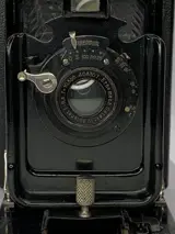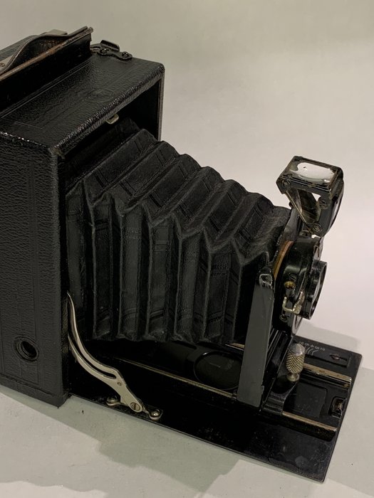 Mooie Ernemann Haeg 0 in zeer nette staat. De sluitertijden werken op het gehoor goed. De lens is helder. De oorspronkelijke plaatcamera is voorzien van een Rollex-Patent opzetstuk waardoor rolfilms gebruikt kunnen worden. Het chroom is in zeer mooie staat. Zie verder de foto’s . Pronkstukje.