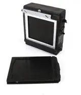 Interesting and very usable shutter assembly from a Speed grafic camera. Shutter seems to works well on all speeds ranging from 1/10th to 1000th of a second by varying the curtain distance. Comes with one fitting 4/5 inch plate holder woth inserts for sheetfilm 4/5.