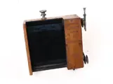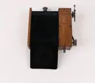 Double flapshutter by Guerry, Paris.Size 11 x 11.5 cm. For lens diameter 70 mm. Wooden shutter in good condition, opens with bulb (not tested), manual (works)and with cord . With flap shutter open for focussing.