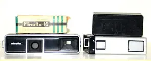 en Minolta - 16 model P met lens Rokkor 35/25 met film in doosje.
