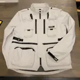 Deze jas is in een goede staat, ritsen werken allemaal goed. Binnen kant is van fleece, mouwen zijn afritsbaar. Jas heeft wat vlekken vooral aan de rechtermouw ( zie foto's).