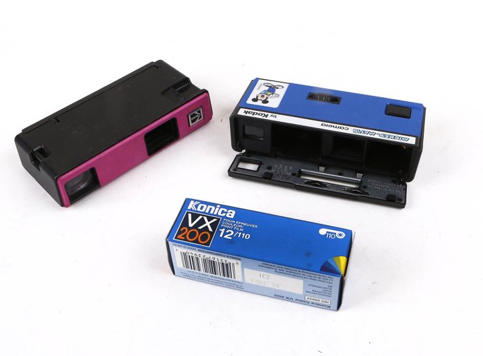 Kodak special 110 cameras.2x Mickey Mousein Pink and Blue, including unused 110 film. Colorful display cameras.