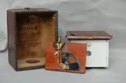 Pocket Kodak made by Eastman Kodak patent 5 may 5 1885august 6 1889. Camera is rood bekleed. Camera heeft ouderdomssporen passend bij de leeftijd. Sluiter compleet. Gemaakt voor 102 film geintroduseerd voor deze zeer kleine box camera. Fix focus. Zie de foto,s deze geven een indruk van de camera en maken tevens deel uit van de omschrijving.