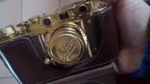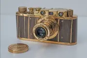 Ik bied een replica aan van een Leica 2 meetzoekercamera uit de jaren 50 in een goed bewaard gebleven goudkleurige kast. Er zijn geen gravures uit de Tweede Wereldoorlog, zoals vaak te vinden is op andere camera's uit die jaren. Ik kon de functionaliteit van de machine verifiëren, in die zin dat hij kan worden gespannen en afgevuurd. Belichtingstijden en diafragma's kunnen worden aangepast. Leuk item om te showen, volgens mijn onderzoek is het een jaren 50 replica van de Zorki 1 in 'luxe uitvoering' met 'gouden kast'.