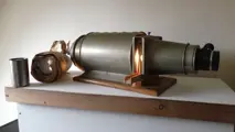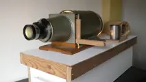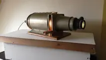 Grote , zo'n 65 cm lange torpedo-achtige toverlantaarn van Ed. Liesegang. Deze toverlantaarn, voor het grotere werk, is in een uiterlijk goede staat met een lichte deuk bovenin het casco. De werking is voortreffelijk, al verloopt de scherpstelling wat schokkerig. Maar het projecteren voor grote groepen voor professionele doeleinden is aan deze lantaarn wel besteed, gezien de kwalitatief hoogwaardige staat van het objectief. De lantaarn wordt geleverd in een self-made houten kist in zeer goede staat, met daarin een houten slede, een originele reservelamp en een tweede objectief van 250mm.De sleuf is geschikt voor geleiders tot 11 cm hoog.