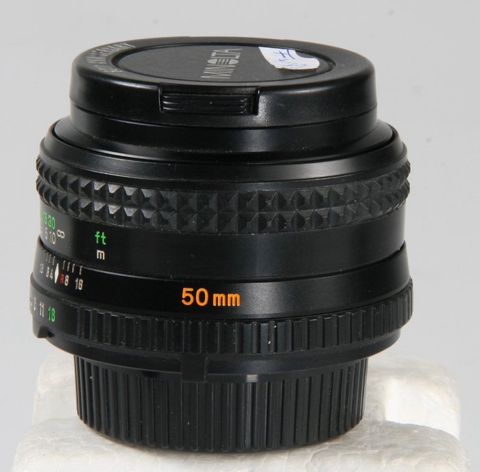 Lichtsterke standaardlens in hele fraaie staat.Mechanisch zeer goed, optisch ook met het nadeel van een beginnende schimmelvorming.Ik kan de dunne draden van de schimmel alleen niet op de foto krijgen.Lens heeft dus een schoonmaakbeurt nodig.