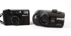 Nikon AF 35 en Minolta Riva Zoom 105i , camera's. Beiden met originele tas en draagriem.