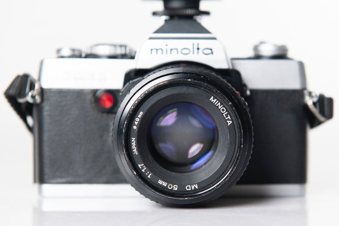 Mooie Minolta XG-1 spiegelreflexcamera met Minolta MD 50mm f1,7 lens en Metz 32CT3 flitser in goede staat (lens=redelijke staat maar werkend), zie foto's.