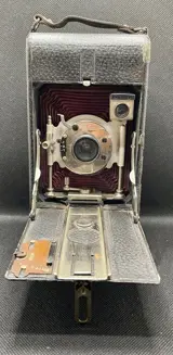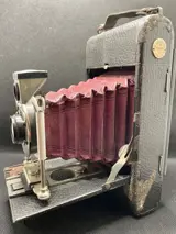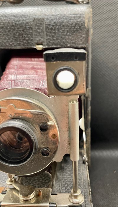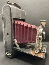 Mooie camera met rood leren balgformaat 9x12cm platen, sluiter met drie snelheden, I,B,T.