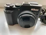 Compacte digitale camera met draaibare lens en kantelbaar scherm en elektronische zoeker.