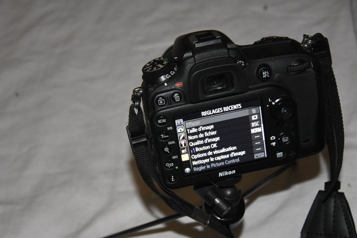 het omvat de riem, de lensdop, 2 batterijen, de batterijlader, een geheugenkaart van 1 Gb, de lens is een DX 18/55 mm, ik heb een nieuwe op de achterschermbescherming geplaatst,