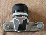 Afgezien van het kleine deukje in de kast (foto) is de Nikkormat FT in zeer goede staat. Voor zover ik kon testen zonder film werkt de camera perfect. Ook de lange tijden lopen soepel. Batterijvak is schoon, geen lekkende batterijen, filmtransport en teller zijn in orde. Belichtingsmeter toont.