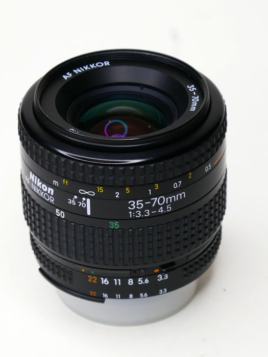 Nikon Nikkor AF 35-70mm f/3.3-4.5 zoomlens in zeer goede staat. Met deze standaard autofocus lens met hoge helderheid is ook goed binnenshuis te fotograferen. Let op; dit objectief is niet geschikt voor de D40 serie, D3000 en D5000 serie. Voor de rest van de Nikon Spiegelreflexcamera's is het geen probleem. met dit objectief is nog lang plezier te hebben. Het objectief is schoon, geen vuil, geen schimmel of krassen. Zie foto's om een goed beeld te vormen van de staat van het objectief. Het objectief wordt geleverd met de originele doppen. Hij wordt goed verpakt verzonden.