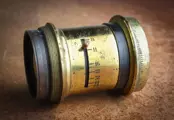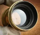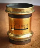 Messing lens met diafragma's van f=8 tot f=64 in goede staat