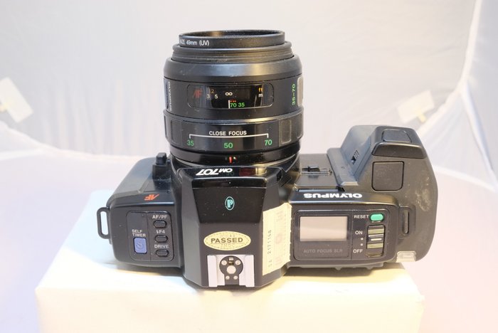 olympus de om 707 met 35-70 + 24 mmf.2,8 + 28 mmf.2,8 + 70-210 de 70-210 werkt alleen in handmatige scherpstelling omdat het voor de om 101 is