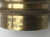 Deze lens beslaat tot 30x40cm (gebruikt op mijn eigen grote reisekamera) maar weegt slechts 374g. De lens is in algemeen goede staat met helder/helder glas en geen tekenen van breuk in een van de 6 balsemlagen. Messing staat is slechts gemiddeld met wat verlies van lak en oppervlakkige markeringen.
