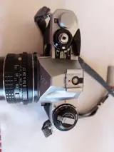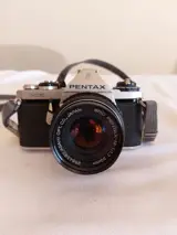 Pentax ME camera, met twee originele Pentax 50mm en 28mm lenzen. Originele hoes voor de camera en voor de hulplens. Met FLASH SOLTRON 133, zonder batterijen.