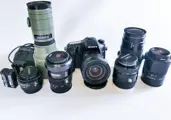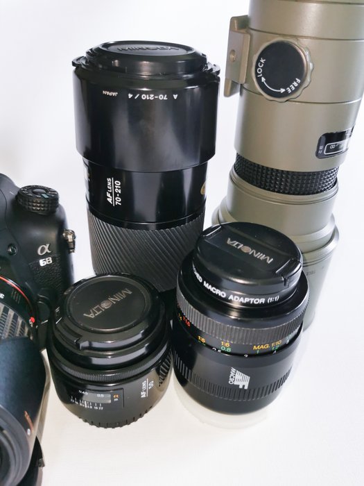Mooie complete set Sony A68 camera met 8 lenzen.