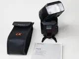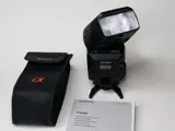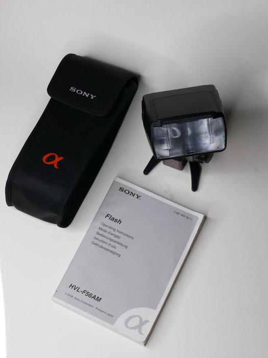 SONY HVL-F56AM professionele flitser voor SONY / MINOLTA camera's. Let op, wel voor het eerste voetje, zie foto's, dus niet geschikt voor de laatste Alpha systeem camera's. De flitser is in zeer goede staat, alleen boven op de flitskop zit een kras, te zien op de foto. De flitser wordt compleet geleverd met etui, gebruiksaanwijzing en standaard.