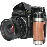 De Asahi Pentax 6×7 MLU is een robuuste middenformaat SLR die de kracht en beeldkwaliteit van het 6×7 filmformaat combineert met de intuïtieve bediening van een traditionele spiegelreflexcamera. Uitgerust met een **Mirror Lock-Up (MLU)** functie, vermindert deze camera trillingen, wat resulteert in scherpe beelden, vooral bij lange sluitertijden en bij gebruik van groothoek- of telelenzen. In combinatie met de **SMC Pentax 67 45mm f/4**, een veelzijdige en scherpe groothoeklens, is dit een uitstekende set voor landschappen, architectuur en reportagefotografie.