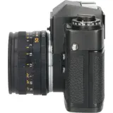 This was a sturdy if rather unoriginal design. The lightmeter was an external CdS cell built into the pentraprism that metered approximately the same view as a 90mm lens. But because the meter was not through-the-lens (TTL), if you had a wide- or long-lens on your camera (not to mention filters), the metering was not quite accurate. There was also limited meter-to-lens communication, which was not that convenient.