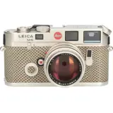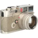 The Leica M6 is a rangefinder camera manufactured by Leica from 1984 to 1998. The M6 combines the silhouette of the Leica M3 and Leica M4 with a modern, off-the-shutter light meter with no moving parts and LED arrows in the viewfinder. Informally referred to as the M6 "Classic" to distinguish it from the "M6 TTL" models, and to indicate its "Classic" M3 dimensions. The top and bottom plates were made from lighter, cheaper magnesium alloy rather than the heavier machined brass of the M3 and M4. The M6 and M6 TTL are mechanical cameras; all functions save the light meter work without batteries, unlike the succeeding M7, which needs electrical power to operate properly. M6 0.85 - 1998. The 0.85 magnification viewfinder was offered on regular production cameras for easier and more accurate focusing with long focal length or wide aperture lenses, such as the 50 mm f/1.0 Noctilux and 75 mm f/1.4 Summilux. The 28 mm framelines are dropped in this model. Only 3,130 of these cameras were made (all black chrome), so they are among the less common regular production of the M6.